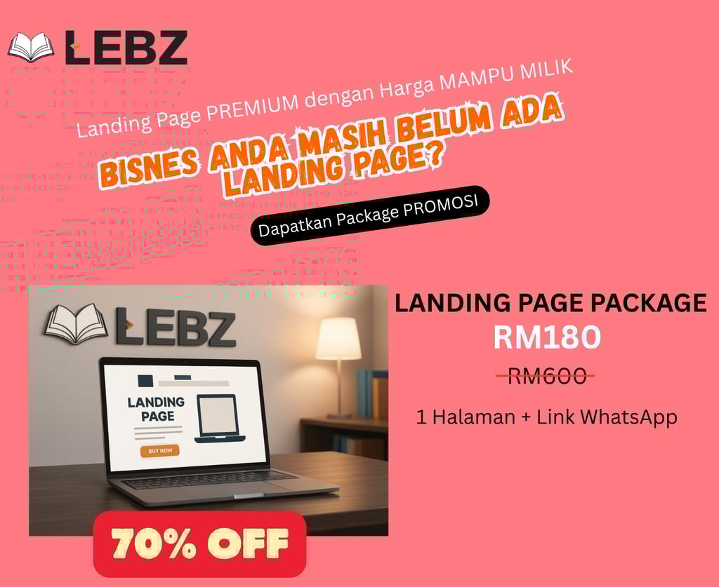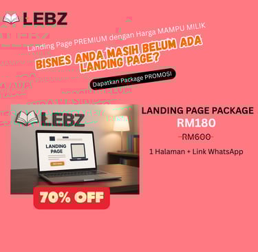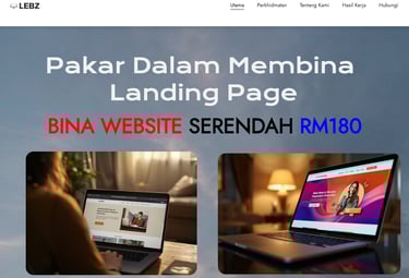 Di LEBZ, kami pakar dalam membina landing page moden, cepat siap, dan berkesan. Setiap laman direka untuk menarik perhatian pelanggan dan meningkatkan jualan anda.